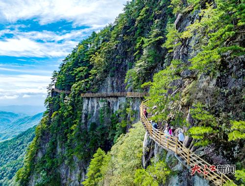 据了解,明月山位于宜春市中心城区西南15公里处,由12座海拔千米以上的大小山峰组成,主峰太平山海拔1736米。景区融“山、石、林、泉、瀑、湖、竹海”为一体,集“雄、奇、幽、险、秀”于一身,拥有国家级风景名胜区、国家AAAAA级旅游景区、国家森林公园、国家地质公园、国家自然遗产等多顶国字号桂冠,是一个“以月亮情吸引人,用生态美景留住人”的集生态游览、休闲度假、科普教育、宗教旅游为一体的山岳型风景名胜区。