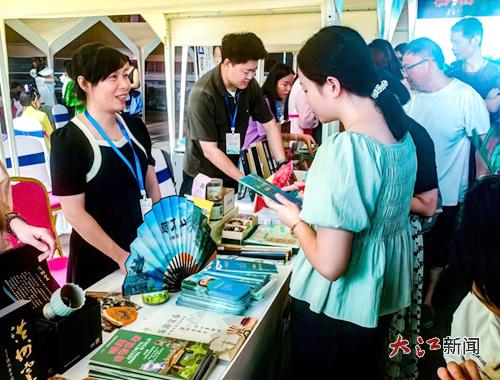 在明月山展位,工作人员详细介绍明月山旅游产品手册、文创产品、特色旅游线路,吸引了许多市民驻足欣赏问询,全面展示了明月山的山水魅力与文化风情。
